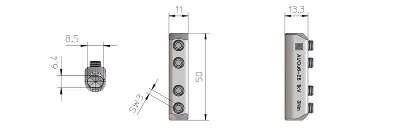 OUNEVA - Ruuvijatkosholkki - 6-25 Al/Cu 4-ruuvinen 1 kV