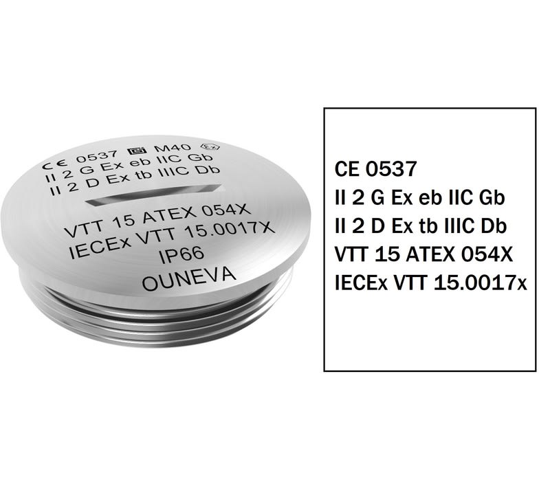 OUNEVA - Sulkutulppa ATEX - IECEx/Atex Sulkutulppa M40