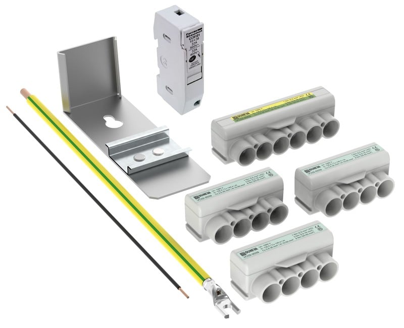 Pylväskalustesarja 3x 4x50 mm², 1x 6x50 mm² sulakepesällä ja 10 A sulakkeella Pylväskalustesarja