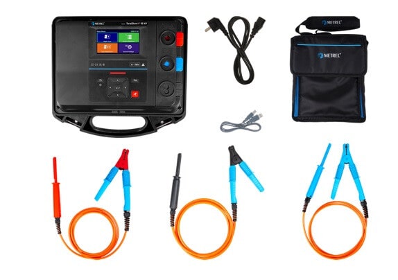 MI 3215 TeraOhmHP 15 kV - Standard set MI 3215 TeraOhmHP 15 kV on kannettava, akku- tai verkkovirralla toimiva testauslaite, jossa on erinomainen IP-suojaus (IP65). Se on suunniteltu eristysvastuksen analysointiin käyttämällä korkeita tasajännitteitä, jopa 15 kV asti. Laitteen CAT IV -mittausluokkan ja korkean sähkömagneettisten kenttien sietokyvyn ansiosta se soveltuu parhaiten vaativiin teollisuusympäristöihin. Kosketusnäytön tai valikkopohjaisen LCD-näytön avulla voidaan helposti ja selkeästi valita erilaisia mittausmenetelmiä ja syöttää tietoja. Uudelleen suunnitelluissa testijohdoissa on värikoodatut banaaniliittimet, jotka takaavat asianmukaisen liitännän ja lukituksen suojaten niitä tahattomalta tai vahingossa tapahtuvalta irrottamiselta.