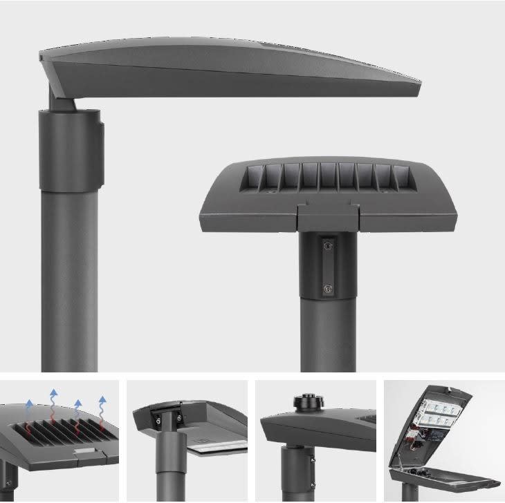 Voidaan asentaa joko Ø 60 mm tai 76 mm pylvääseen. Suorituskykyiset heijastimet, jotka on valmistettu erittäin puhtaasta alumiinista, heijastavuus on yli 97%.