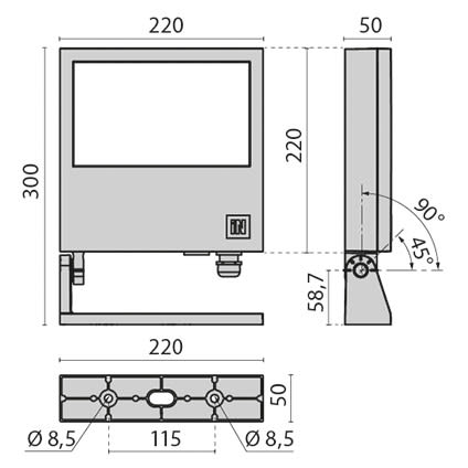 LED-valonheitin sisä- ja ulkokäyttöön (IP66) Runko ja säädettävä sanka on painevalettua alumiinia. Valaisimessa on karkaistu lasi, alumiiniheijastin. Asennus seinään- tasoon tai erillisellä maapiikillä maahan. Saatavana valon värilämpötilana 3000K tai 4000K.