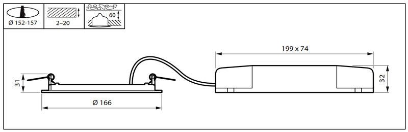 - Valaisimen korkeus 28 mm, sopii ahtaisiin välikattoihin