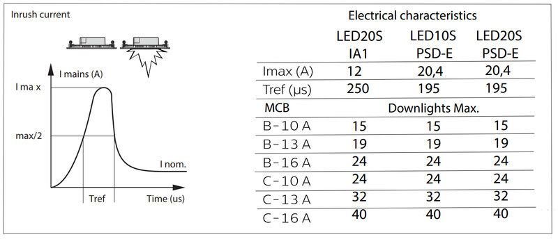 Enimmäismäärä valaisimia, johdonsuojakatkaisija C16: