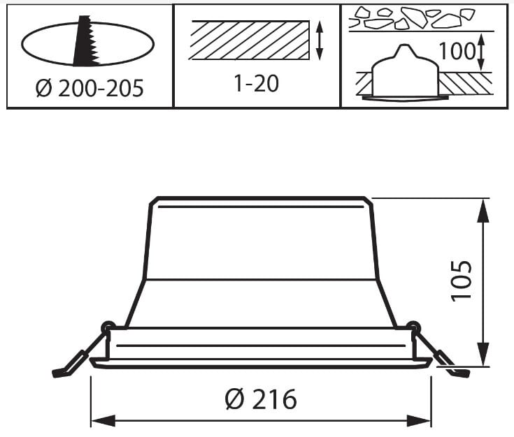 - Upotusaukko: 200-205 mm