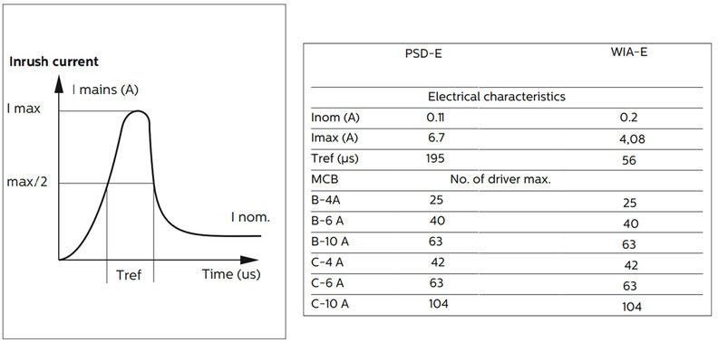 Enimmäismäärä valaisimia, johdonsuojakatkaisija C16: