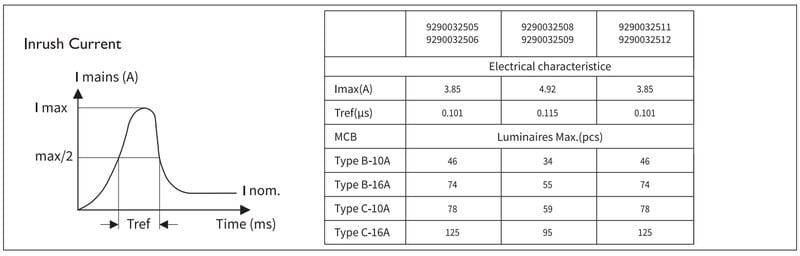 Enimmäismäärä valaisimia, johdonsuojakatkaisija C16:
