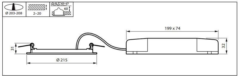 - Valaisimen halkaisija: 215 mm