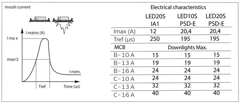 Enimmäismäärä valaisimia, johdonsuojakatkaisija C16: