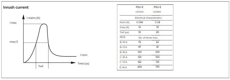 Enimmäismäärä valaisimia, johdonsuojakatkaisija C16: