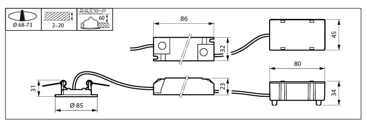 - Valaisimen halkaisija: 85 mm