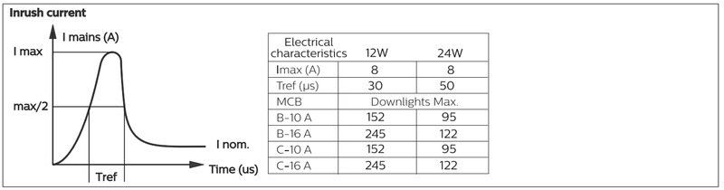 Enimmäismäärä valaisimia, johdonsuojakatkaisija C16: