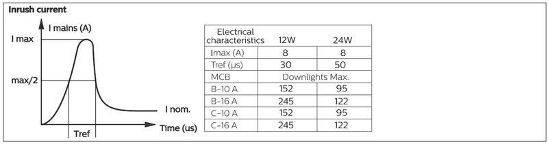 Enimmäismäärä valaisimia, johdonsuojakatkaisija C16:
