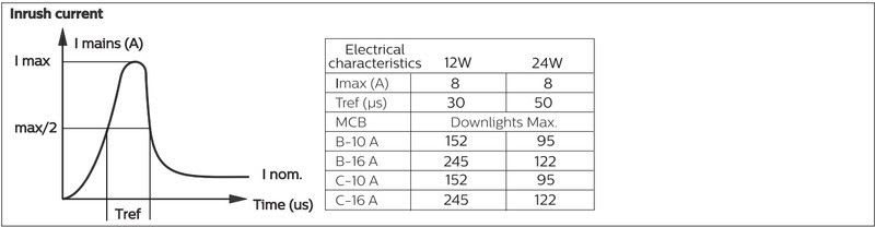 Enimmäismäärä valaisimia, johdonsuojakatkaisija C16: