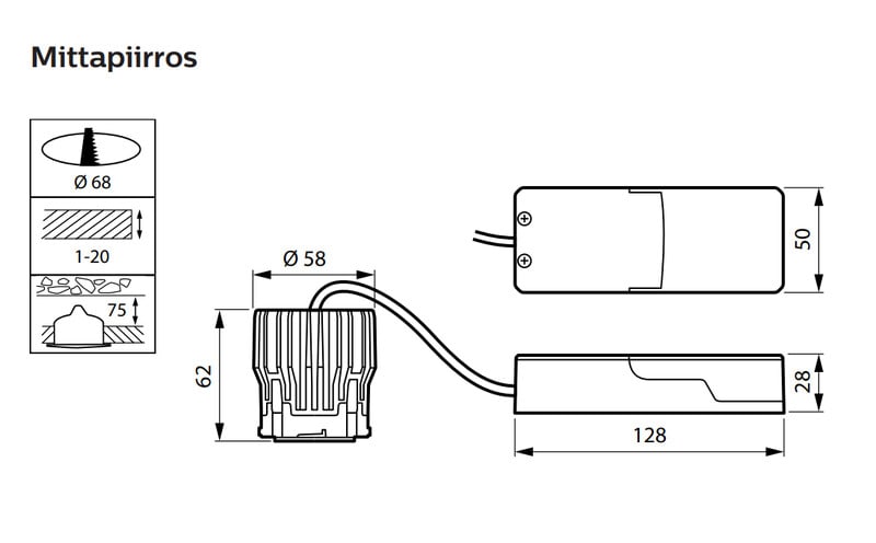 - Asennusaukon koko: 68 mm