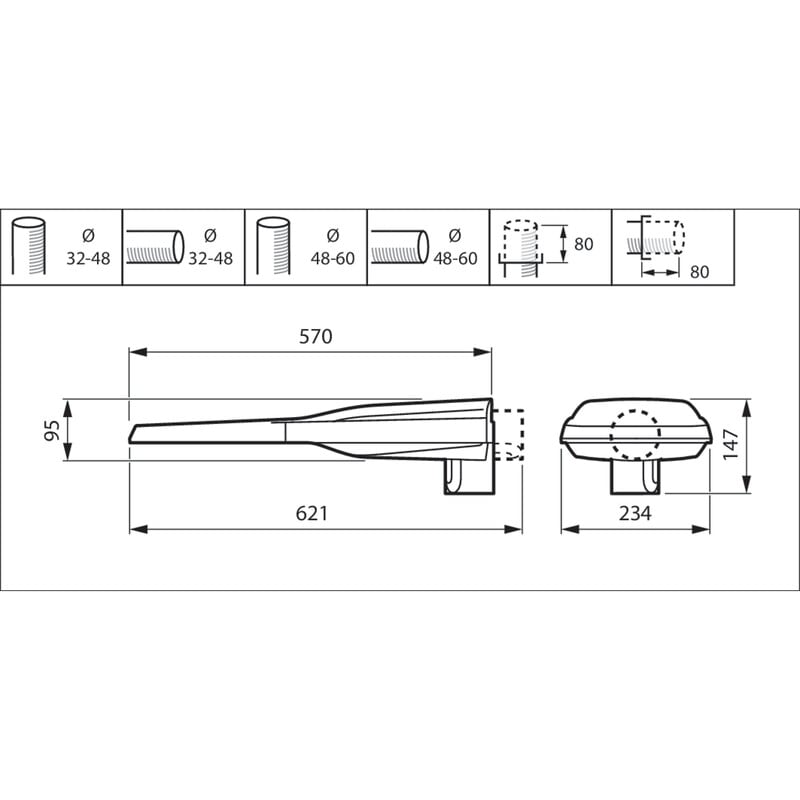 - 2 Zhaga-liitintä (valaisimen ylä- ja alapuolella)