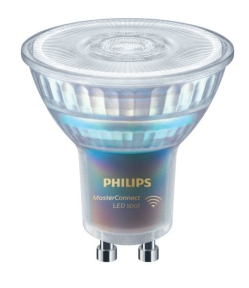 Philips MasterConnect LED-lamppuja voidaan ohjata langattoman Interact Pro -sovelluksen avulla Bluetooth-yhteydellä, mikä mahdollistaa merkittävät energiansäästöt. Interact Pro -järjestelmän asennukseen ei vaadita ohjauskaapelointia, ylimääräisiä liittimiä tai kaapelikouruja. Langaton ja automatisoitu valaistuksenohjaus on helppokäyttöinen. Yhdyskäytävä (gateway) tarjoaa lisäominaisuuksia, kuten kalenteriohjauksen, energiankulutuksen seurannan ja etähallinnan. Lampun valovirta on 345 lm ja se korvaa perinteisen 50 W halogeenilampun. Lampun värilämpötila on 3000 K. Lampun käyttöikä on 25 000 h viiden vuoden tuotetakuulla.