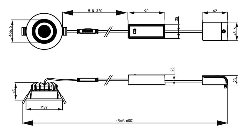 - Valaisimen korkeus: 43 mm, soveltuu ahtaisiin alakattoihin