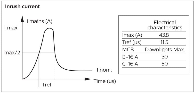 Enimmäismäärä valaisimia, johdonsuojakatkaisija C16: