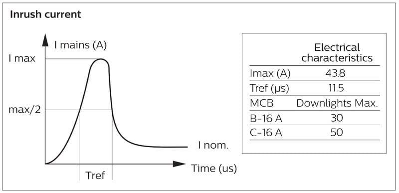 Enimmäismäärä valaisimia, johdonsuojakatkaisija C16: