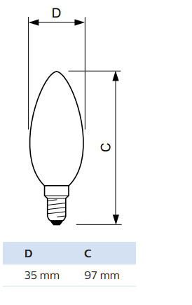Philips CorePro LEDcandle -kynttilälamppu korvaa 25 W perinteisen E14-kantaisen halogeenilampun. Lampun valovirta on 250 lm ja sen värilämpötila on 2700 K. Lamppu soveltuu käytettäväksi yleisvalaistuksessa toimistoissa, oppilaitoksissa ja kaupoissa. Lampun elinikä on 15 000 h viiden vuoden tuotetakuulla.