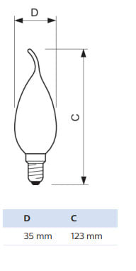 PHILIPS - Kynttilälamppu - E14 827 250lm 25W=2W BA35 CL