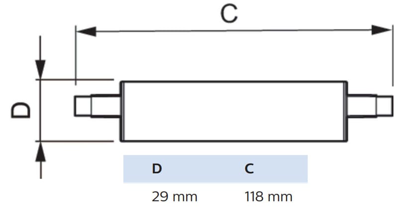 - Korvaa perinteisen 100 W:n kaksikantaisten lineaarisen R7S-lampun