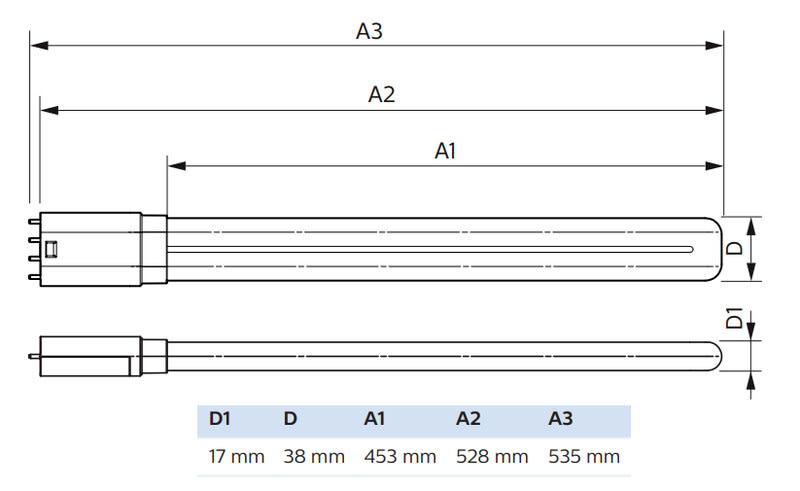 Philips CorePro LED PLL korvaa perinteisen 55 W PL-L-pistokantaloistelampun. Lampun materiaali on lasi ja se soveltuu käytettäväksi elektronisella liitäntälaitteella. Lampun valovirta 3400 lm ja värilämpötila 4000 K. Keilakulma 160°. Lampun elinikä on 30 000 tuntia kolmen vuoden tuotetakuulla.