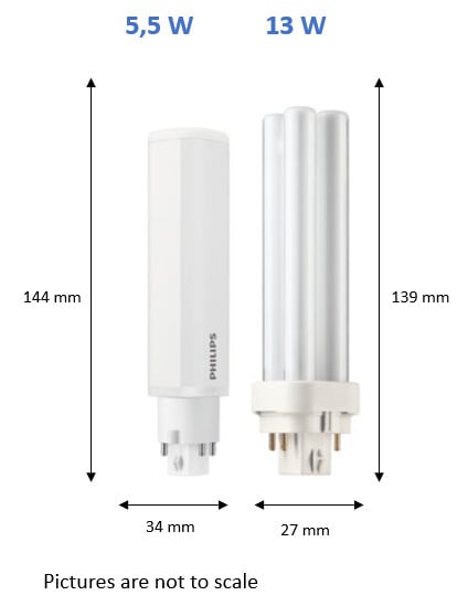 - Korvaa 13 W perinteiset PLC-lamput