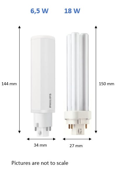 - Korvaa 18 W perinteiset PLC-lamput