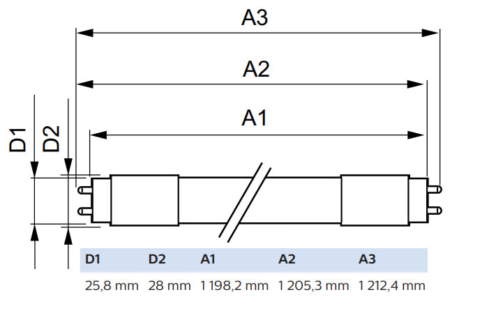 - Lampun pituus: 1200 mm