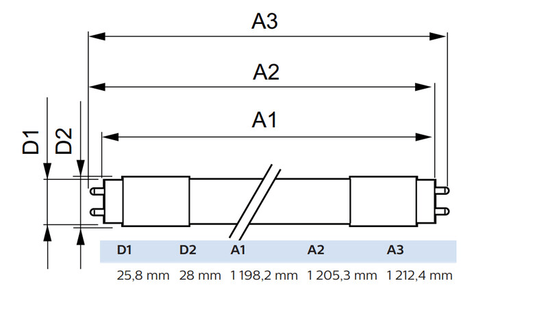 - Lampun pituus: 1200 mm