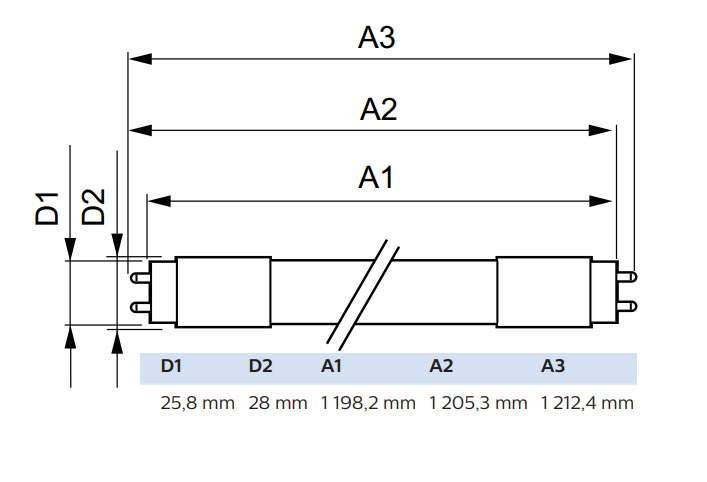 - Lampun pituus: 1200 mm