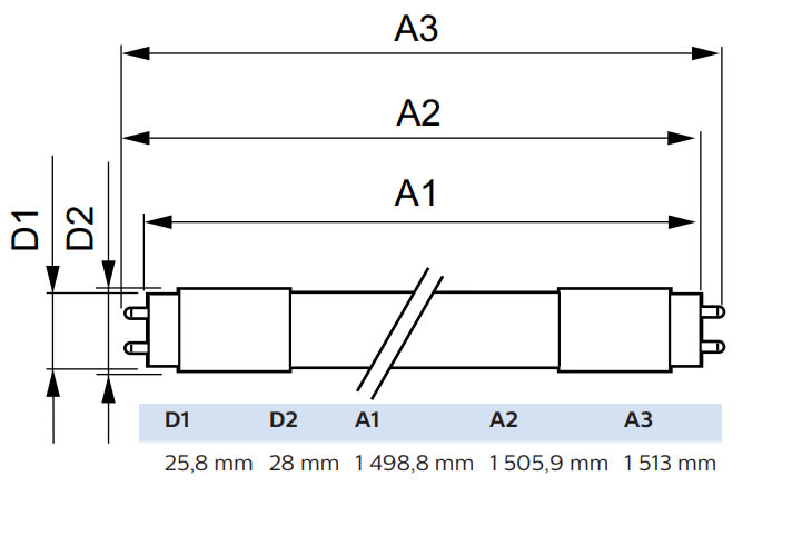 - Lampun pituus: 1500 mm