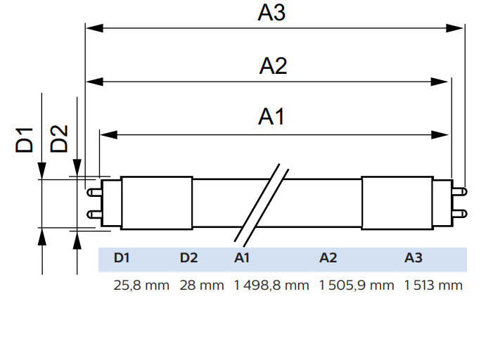 - Lampun pituus: 1500 mm