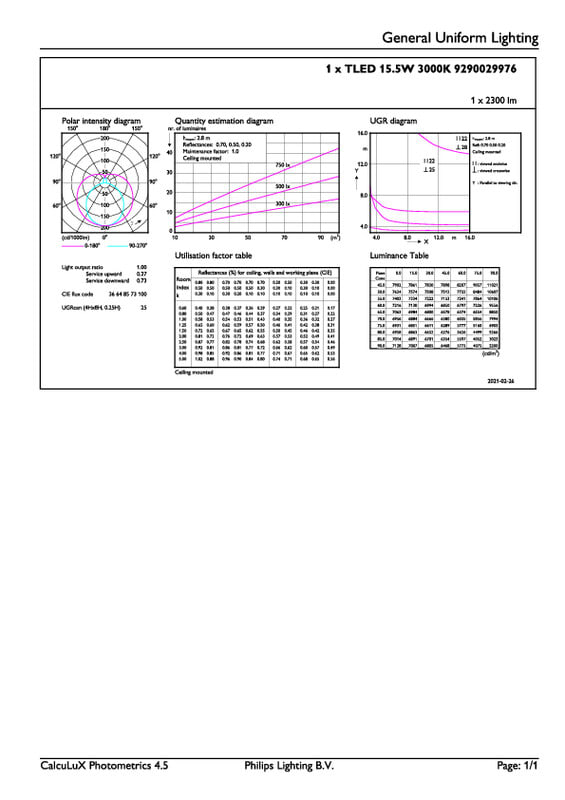 Laskennallinen valovoima IEC 62612 mukaan: