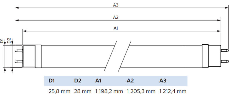 Philips MASTER LED-valoputki on T8-putki, joka soveltuu yleisvalaistuskohteisiin, toimistoihin ja kouluihin. Lampun valovirta 2100 lm ja värilämpötila 4000 K. Valoputki korvaa 1200 mm 36 W T8 loisteputken. Putken voi asentaa suoraan verkkovirralle maksimaalisen energiatehokkuuden takaamiseksi, tai elektromagneettiselle kuristimelle. Tuotteella on 60 000 h käyttöikä ja viiden vuoden tuotetakuu.