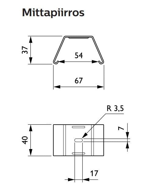 - Mitat (korkeus x leveys x syvyys) 37 x 67 x 40 mm