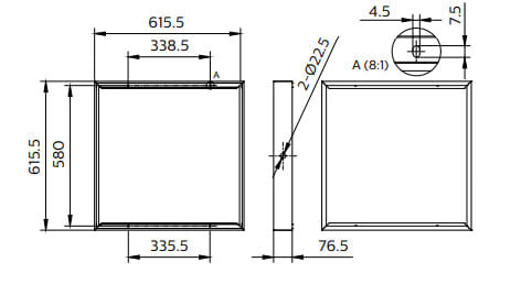 - Mitat (korkeus x leveys x syvyys) 79 x 616 x 616 mm