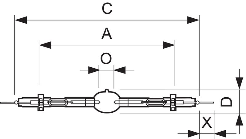 Pienikokoinen monimetallilamppu, kaksoisläpivienti (double-pinch).