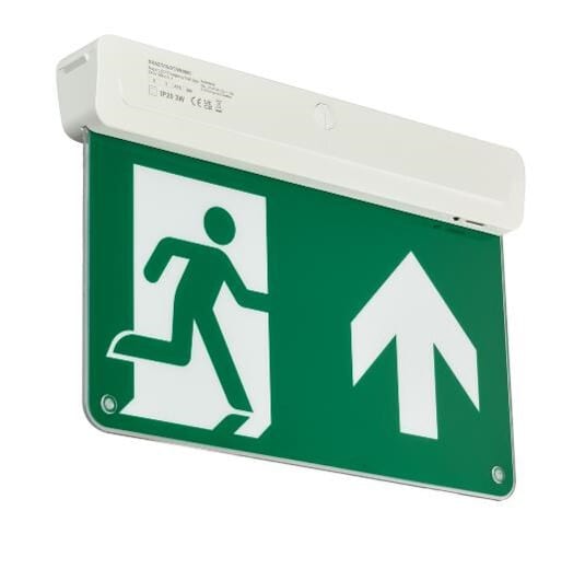 Philips Emergency Exit Sign -poistumistieopas EM159C WL/CM EXIT SIGN M3 ELB UP WH. Valovirta 23lm, teho 3W, värilämpötila 6500K, ei himmennettävä, kytkeytyy automaattisesti päälle, valaistu alue 1m², manuaalinen testaus, käyttöikä 100 000h. Philips Emergency Exit Sign -poistumistieopas