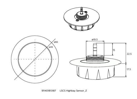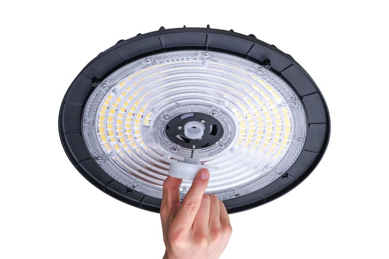 Philips Ledinaire Highbay -syväsäteilijän mikroaallolla toimiva liiketunnistin. Toisin kuin infrapunasensori, mikroaaltosensorin kyky havainnoida liikettä ei riipu lämpötilasta, eikä esimerkiksi ympäristön pöly vaikuta mikroaaltosensorin toimintaan. Se pystyy havaitsemaan liikettä myös ohuiden materiaalien läpi, esimerkiksi lasin. Sensori soveltuu käytettäväksi tuotteen Philips Ledinaire Highbay All-in valaisimen kanssa (sähkönumero: 4350504).