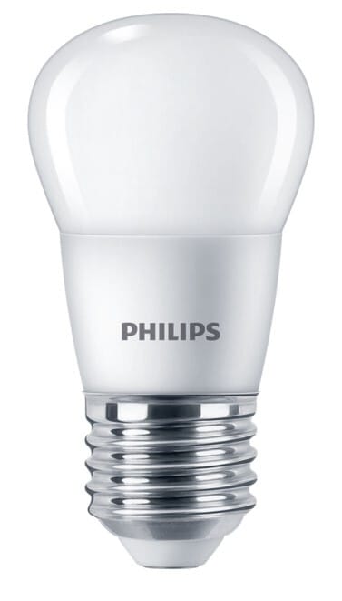 Philips CorePro LEDLuster -pienkupulamppu ND 2.8-25W E27 827 P45 FR. Valovirta 250lm, teho 2.8W (korvaa 25W), värilämpötila 2700K, värintoistoindeksi Ra80, kanta E27, ei himmennettävä, käyttöikä 15 000h, -20...+45 ˚C. Yleisvalaistukseen. Philips CorePro LEDLuster -pienkupulamppu