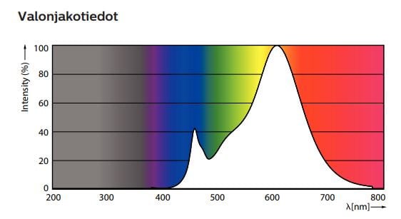 - Valotehokkuus: 100 lm/W