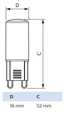 Philips CorePro LEDcapsule -lamput sopivat G9-kantaisten halogeenilamppujen tilalle. Lampun valovirta on 470 lm ja se korvaa perinteisen 40 W halogeenilampun. Lampun värilämpötila on 3000 K ja sitä voidaan käyttää yhdessä useimpien muuntajien kanssa. Lamppu soveltuu ihanteellisesti koriste- ja tunnelmavalaistukseen esimerkiksi ravintoloissa ja hotelleissa. Lampun käyttöikä on 15 000 h ja sillä on kahden vuoden tuotetakuu.