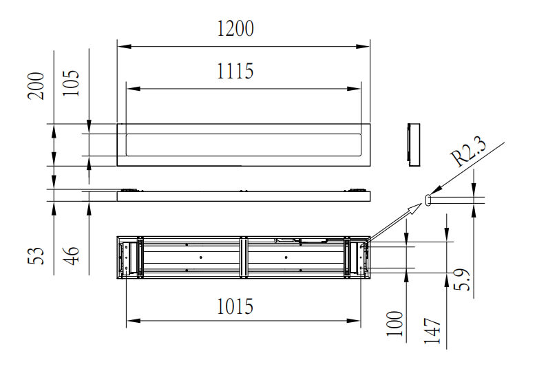 - Mitat (korkeus x leveys x syvyys): 53 x 200 x 1200 mm