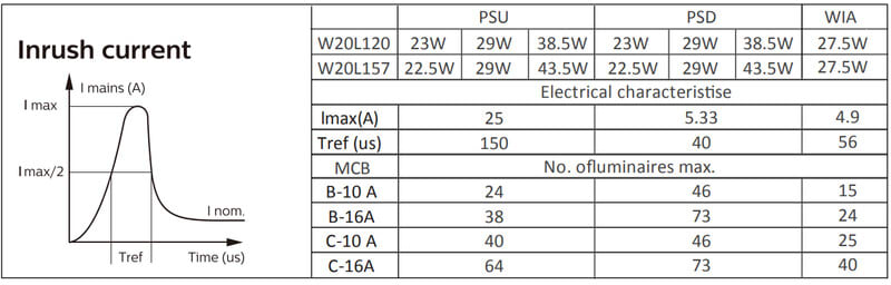 Enimmäismäärä valaisimia, johdonsuojakatkaisija C16: