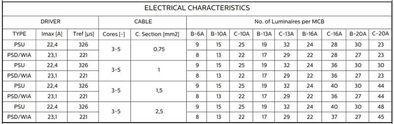 Enimmäismäärä valaisimia, johdonsuojakatkaisija C16: