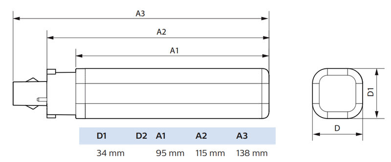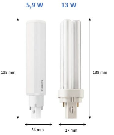 - Korvaa 13 W perinteisen PLC-lampun