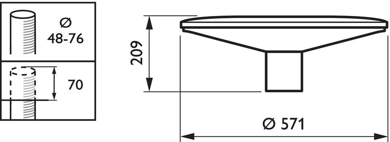 - Asennus pylvään päähän, halkaisija 62 mm